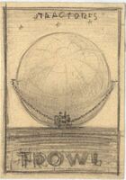 Atracadores. Trowl Bajo el lema de “atracadores” se ha dibujado una gran pelota encadenada que ocupa todo el espacio pictórico. Debajo de esta figura se ha escrito la palabra “trowl”. El dibujo está enmarcado y no hay cualquier presencia de color, a excepción del negro.