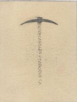 Silueta de un pico Imagen central de un pico de construcción, cuyo vástago de madera sólo está insinuado mediante trazaos discontinuos formados por la letras anunciantes de la compañía, mientras que el pico metálico está perfectamente definido en un negro oscuro.