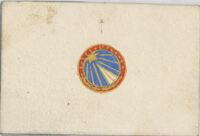 Sin título Dibujo de un motivo circular en fondo azul que presenta una decoración geométrica, una estrella y líneas rectas en amarillo, y una punta triangular en blanco, todo ello de con un contorno rojo con estrías en amarillo.