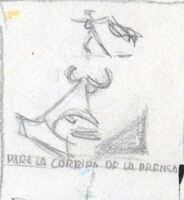 Para la corrida de la prensa En esta composición parecen representarse tres figuras no muy bien definidas ya que se trata de un boceto: un toro, un torero y una figura triangular. Destaca el color blanco grisáceo.