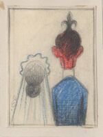 ORGULLO DE CASTA. Pareja de novios dibujados de espaldas. En la figura del caballero se observa en la cabeza un curioso remate en forma de flor de Lis: ¿tendrá algo que ver el dibujo con alguna boda real del momento?...Boceto realizado para la ilustración de la revista semanal Novelas y Cuentos. Titulo: Orgullo de casta. Autor: M. Maryan. Nº publicado: 1215. Fecha: 22-08-54. Tomo NC.: 45.