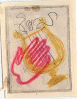 TRES TUMBAS Se visualiza en la imagen enmarcada la figura de un instrumento musical, en este caso una lira, de color amarillo con sus cuerdas tratadas a lápiz. Una mano de gran tamaño y de color rojo se sobrepone a la liraBoceto realizado para la ilustración de la revista Novelas y Cuentos. Titulo: Tres Tumbas. Autor: E. Kyle Nº publicación: 1043; Fecha 06-05-1951; Tomo NC/. 50 Prueba Imprenta: 74