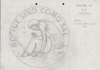 Boceto del reverso de la medalla nº 20 serie V centenario del descubrimiento de América. Boceto a lápiz del reverso de la medalla número veinte, con la imagen de un hombre rudo excavando con pico y pala, junto a las letras “No fue sino como sal”. La verdad es que no llegamos a entender lo que esas emblemáticas palabras quieren decir.para Numismática Iberica OTROS ARCHIVOS: MBR/1359. (anv/rev.) MBO/471