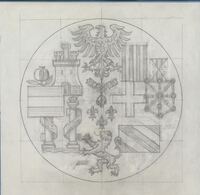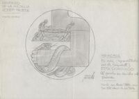 Boceto reverso de la medalla de losREYES DE ESPAÑA Boceto a lápiz sobre fondo cuadriculado, de la cara de una medalla donde se representa un conjunto de elementos que configuran un escudo, y que está formado a partir de diferentes símbolos.Boceto Reyes de España reverso para Numismatica Iberica Otros archivos: MEN/1727 MBR/1333
