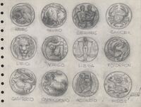 BOCETOS SOBRE SIGNOS DEL ZODIACO Boceto a lápiz, de los anversos de las medallas que representan a todos los signos del zodiaco correspondientes a los meses del año. De ver un dibujo posterior a los bocetos individuales, ya que están realizados con gran rapidez y decisión.Serie signos del zodiaco realizados para Instituto Numismatico, solo anversos ya que se realizo un solo reverso para todos los signos.