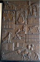 Canarias Fotografía de una placa de bronce representativa de Canarias, con las figuras y elementos iconográficos significativos de la región, entre los que destacan los camellos y dos jóvenes luchando.Otros archivos: Mbo/ 342 Men/1319