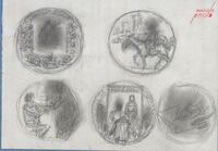 Bocetos de medallas realizados para el estudio del V Centenario nº4 Boceto a lápiz de cuatro caras de unas medallas, que representan diferentes escenas y personajes. Parecen medallas que nada tienen que ver unas con otras y que, por tanto, son bosquejos donde el artista se ha dejado llevar por su inventiva creativa.Bosquejos para el V Centenario del descubrimiento de America. OTROS ARCHIVOS RELACIONADOS. MBO/435+436 MEN/1779 MG/1532 MBR/1336