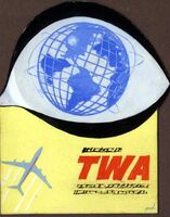 Cartel de la compañía aérea twa Cartel con la imagen de un gran ojo en cuyo interior se encuentra representado un globo terráqueo en azules, debajo del ojo la figura de un avión sobre fondo claro, que se mueve a gran velocidad. Leyenda abajo a la derecha del boceto, se puede leer "… TWA … ". La firma se encuentra en la parte inferior derecha en forma de bosquejo.