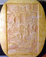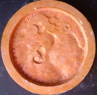 Aries Molde de escayola de la cara de una medalla en negativo (las petras aparecen al revés) representativa del signo del zodiaco Aries representado por la cabeza de un macho cabrío de gran cornamenta.Otros archivos: MG/1418 Mbo/308
