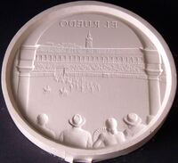 El Ruedo Molde de escayola del negativo de una medalla que representa tras el arco que forman unas pilastras de las gradas de la plaza, a un grupo de espectadores que observan atentos el paseillo.2ª Tauromaquia. OTROS ARCHIVOS: MBO/290.5 MG/1404