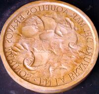 21 Enero-18 Febrero Signos del Zodiaco Por encima del recuadro central presente en esta medalla se ha escrito una fecha y representado una escoba. Por debajo también se ha escrito una fecha y se ha representado una máscara. La técnica usada ha sido el bajo relieve.2º Zodiaco Otros Archivos: MBO/304 MBR/1580