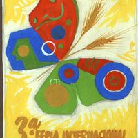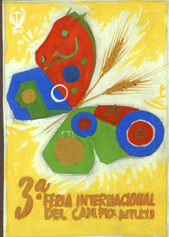 - La figura de una mariposa, con gran cromatismo, cuyo cuerpo lo forman dos largas espigas de trigo, siendo contorneada en blanco como si de su luminosidad se tratase. Todo ello sobre un fondo ocre. Leyenda:" 3ª FERIA INTERNACIONAL DEL CAMPO …"