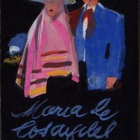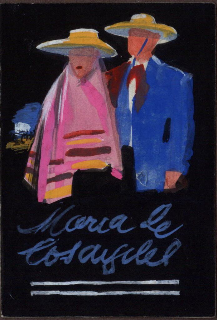 - Sobre un fondo totalmente oscuro, la imagen de una pareja muy esquemáticamente realizada con vestidos típicos regionales, encuadrado con el rótulo “María de los Ángeles”.