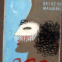Ocupando casi todo el espacio, el perfil de una figura veneciana en cuyo interior a la altura de los ojos, la representación de una máscara en blanco rodeada por una maraña en negro simulando el cabello de la mujer, con detalles en rojo en los labios y en la cinta ondulada que cruza la parte inferior del cartel. Leyenda: "1936 BAILE DE MASCARAS- CIRCULO DE BELLAS ARTES"
