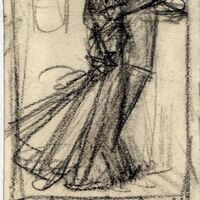 - En este boceto donde destacan los colores oscuros se puede apreciar la figura estilizada de un hombre y una mujer agarrados bailando. Dos figuras que se encuentran de perfil.