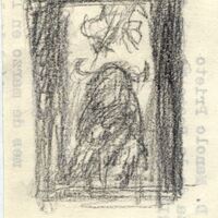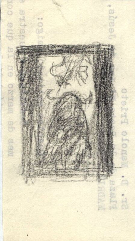 - En el centro del dibujo, que bien se puede decir que es un boceto, se ha creado un cuadrado pequeño para servir de enmarque a la figura de un toro negro que se encuentra de espalda.