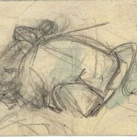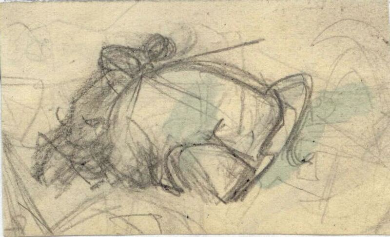 - Apunte de un torero entrando a matar…, sobre un laberinto de líneas de menor intensidad que corresponden a otros bocetos desechados y medio borrados. Lo caricaturesco de la escena está motivado por intentar conseguir la mayor intensidad del épico momento.