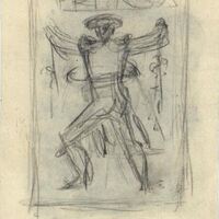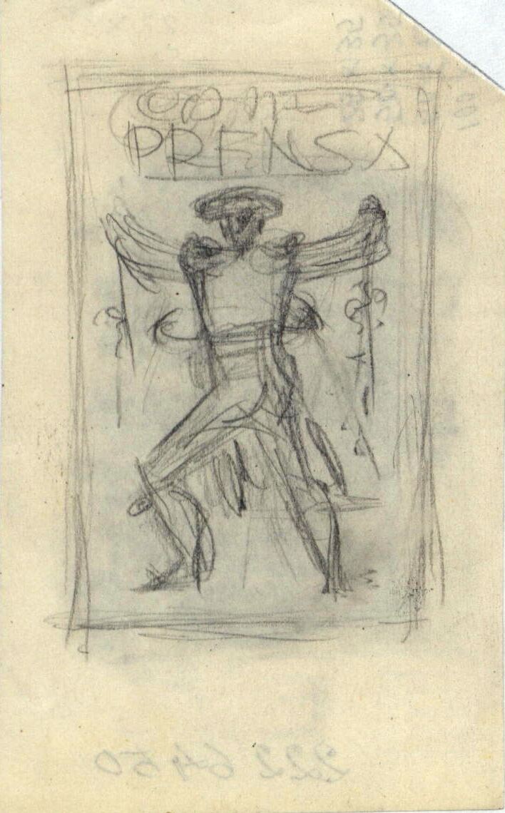 - Enmarcado y sobre un fondo gris azulado líneas de color negro han formado la figura de un torero de espalda y de figura muy estilizada llevando en cada mano una banderilla que se dispone a clavar al toro.