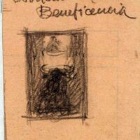 Bajo el lema de “corrida de beneficencia”, situado en la parte superior, se ha representado en una escena taurina, enmarcada en el centro de la composición, la figura de un toro negro, de espalada y del que se ve su cabeza solamente. El animal parece observar fijamente la imagen de un torero al fondo, en segundo plano. Predominan las líneas de color negro.