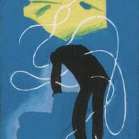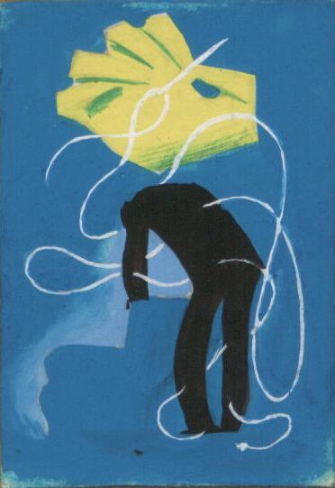 Un hombre negro se ha representado en un fondo azul apoyado en un sofá igualmente azul. La figura humana está de espalda. A su alrededor flota en el aire un hilo blanco con forma ondulante que atraviesa al hombre en algunas partes de su cuerpo. Y en la parte superior destaca una mano de color amarillo que coge dicho hilo sujeto a un alfiler como si costurase.