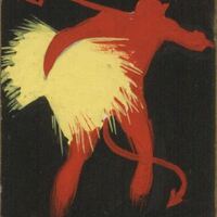 - En este dibujo se representa sobre un fondo totalmente negro la figura roja de un diablo con su tridente apoyado en sus hombros y portando bajo su brazo derecho un montón de paja amarilla.