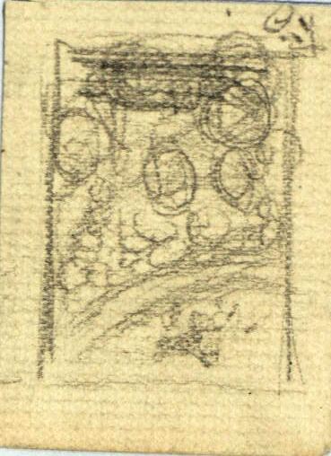 - En un boceto se ha querido realizar una vista de una plaza de toros enmarcando la imagen. Destacan las líneas oscuras sobre un fondo amarillento.