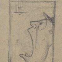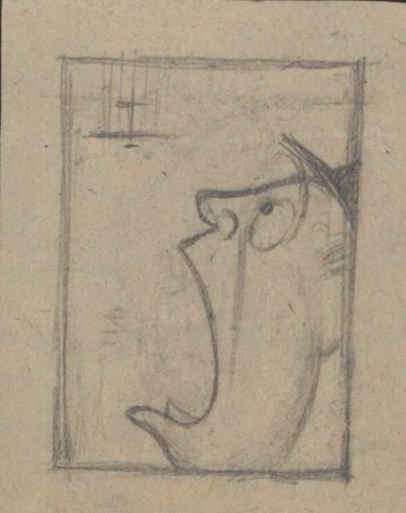 - Imagen en primer término de la cara de un hombre de perfil, donde se aprecia parte de su sombrero de ala negro con una gran boca abierta al observar como una avioneta cae en picado a lo lejos.