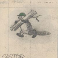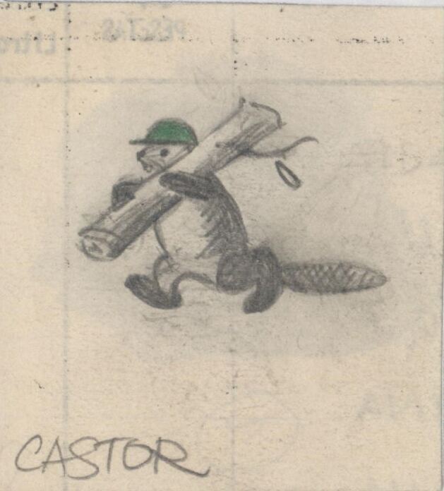 - Quizá no haya un animal más relacionado con la construcción como el castor, que aparece representado simpáticamente en plena faena de trabajo transportando un tronco sobre sus hombros.