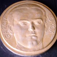 - Molde de escayola de la cara de una medalla donde se representa el retrato del poeta granadino García Lorca, con la dificultad añadida de hacer –en una medalla- un retrato de frente.Sin mas referencias. Otros Archivos: MBO/ 517 MG/1544