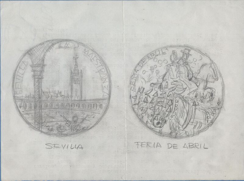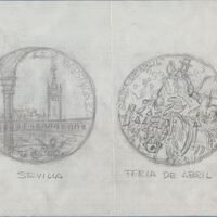 Boceto de una medalla de Sevilla anverso, feria de Abril reverso