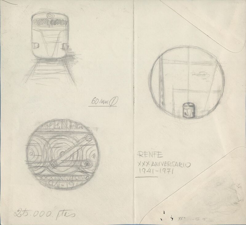Boceto de una medalla conmemorativa de Renfe, anverso y reverso