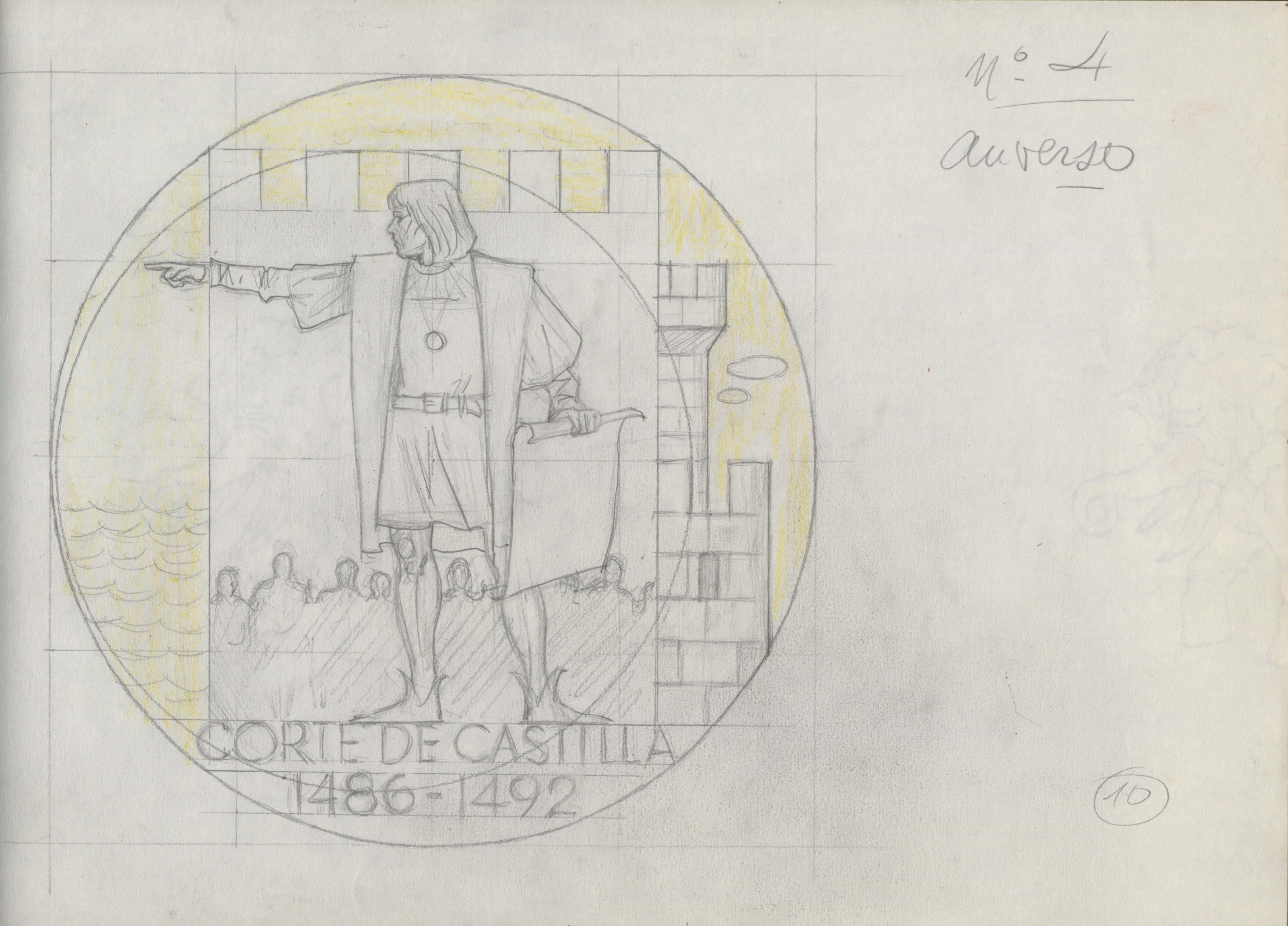 Boceto del anverso de la medalla nº 4 -V centenario del descubrimiento de América "Corte de Castilla" (anverso)