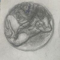 - Boceto a lápiz de la cara de una medalla donde se aprecia la figura de una mujer desnuda, tumbada con una mano en uno de sus pechos: las piernas se contraen favoreciendo el que entren en la circunferencia de la medalla.Serie erótica realizadas para el propio medallista