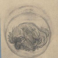 - Hermosísimo boceto a lápiz de una de las caras de una medalla con la imagen del apareamiento de un gallo y una gallina.Sin referencias. Bocetoprobablemente para laserie erótica realizada por Manolo Prieto.
