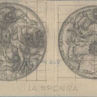 - Boceto a lápiz de la medalla titulada La Bronca sobre fondo cuadriculado, donde se aprecia en el anverso la imagen de una mujer en primer término que grita ante el espectáculo de varios hombres peleándose y tendidos en el suelo junto al reverso con la escena de dos hombres en plena lucha.Sin referencias. Bocetodefuturo proyecto de medalla sobre el titulo "La bronca"