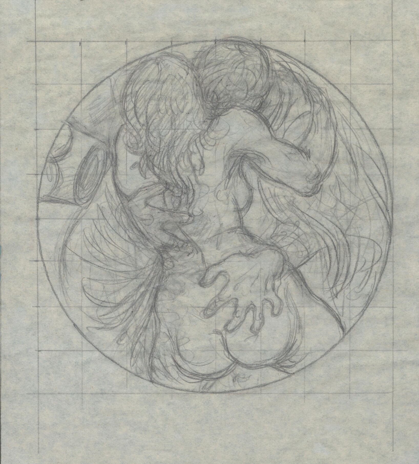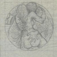 - Boceto de una de las caras de la medalla titulada Abelardo y Floisa donde se representa a los amantes haciendo el amor. Es de destacar la mano de él, en forma de una verdadera garra.