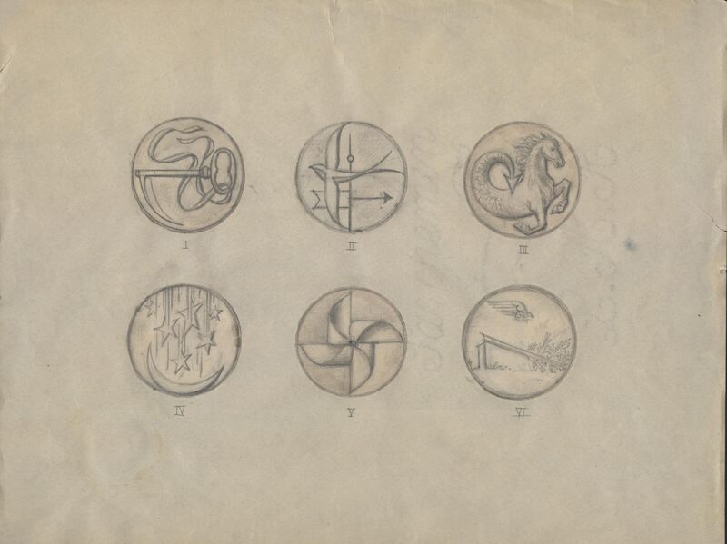 - Boceto de un conjunto de seis medallas con temática diferente no relacionadas entre sí, más que por que son los bocetos de las medallas que van por el reverso de las medallas taurinas.