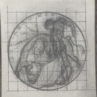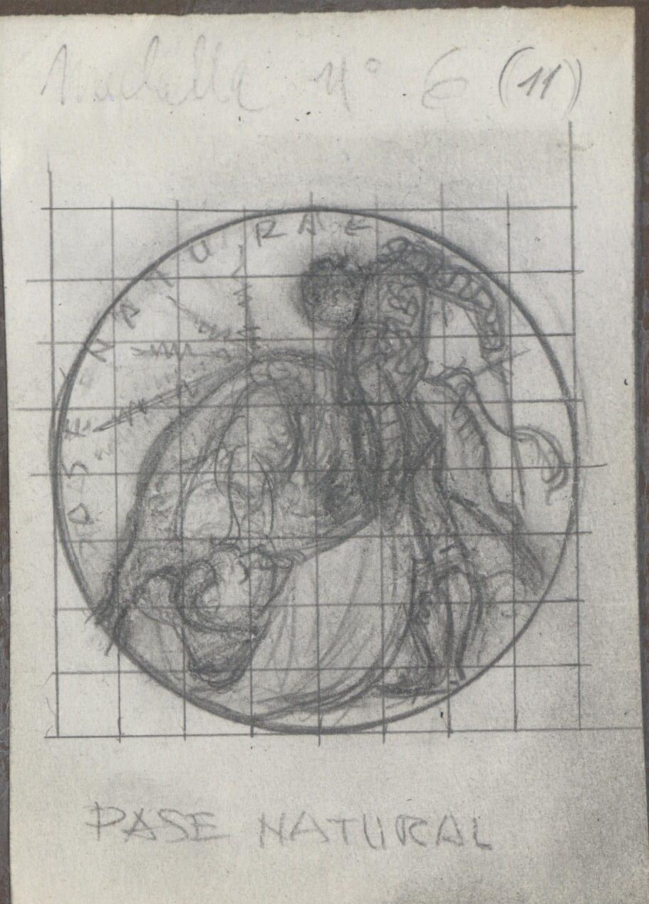 - Boceto a lápiz con fondo cuadriculado para traspasarlo a otro tamaño o material, del pase del torero a un toro que se le revuelve. Apuntado a lápiz por el artista, abajo, el título y, arriba, la numeración: “(11)”.