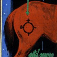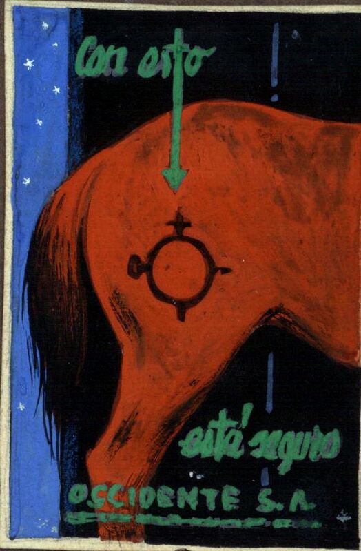 - Anagrama circular sobre el lomo del caballo, donde se puede leer, el lema publicitario “con esto está seguro, occidente s.a.” el resultado final del cartel es de gran imaginación y belleza.