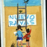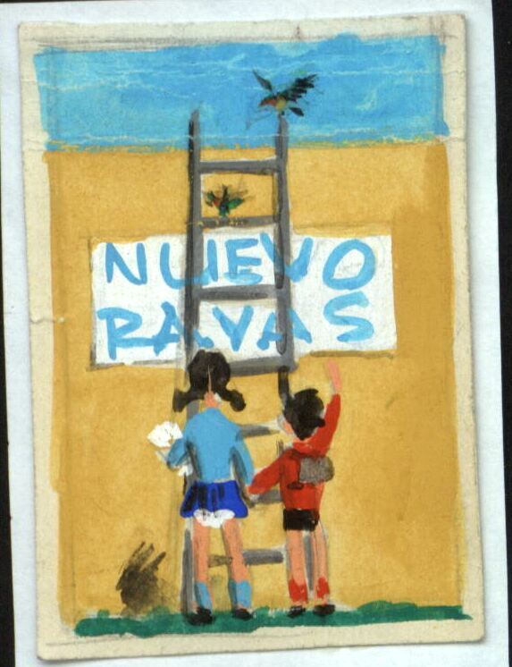 - Dibujo de dos niños de espaldas mirando una pared con un cartel (que no es otro que el título de la Revista) y una escalera apoyada que sobresale hacia el cielo. Dos pájaros se apoyan en la escalera.