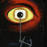 - Cartel con una temática un tanto surrealista, un gran ojo en tonos rojos, con una pupila insertada en un fondo cuadrado blanco desde donde cuelga la cadena de un ancla: una vez más relaciona Prieto la visión obsesiva de la televisión con el encadenamiento-estancamiento que produce un ancla.