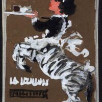 - Imagen de una camarera portando una bandeja, la parte superior corresponde a su figura y el resto al lomo y las patas de una cebra. La inaudita centaura llega a resultar incluso convincente visualmente.