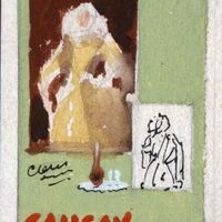 - Dos encuadres de una figura femenina, una de ellas es una silueta con color, y en la parte inferior un boceto pequeño, de la misma imagen, esquematizada en sus líneas principales.