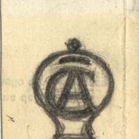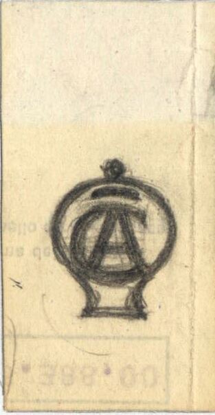 - Una hucha en negro y pequeña se ha representado con un monograma en forma de “c” en cuyo interior hay una “a” en letras mayúsculas. El monograma se encuentra en el centro del objeto.