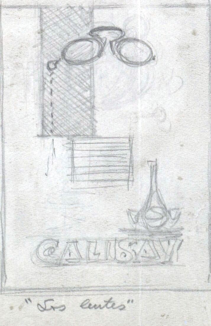 - Sobre un fondo blanco grisáceo destaca el dibujo de unas gafas en la parte superior. Acompañan la imagen figuras en la parte inferior y con forma rectangular en el fondo del dibujo.