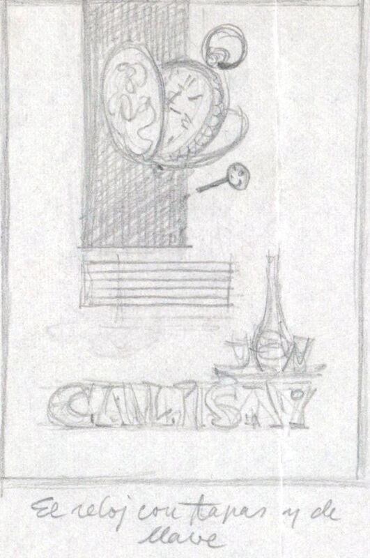 - Un reloj abierto se encuentra en la parte superior donde también se ven dos figuras rectangulares, una vertical y otra horizontal. La palabra “calasay” acompaña el dibujo en la parte inferior en donde una línea lo separa de su lema. Destaca el color blanco grisáceo.