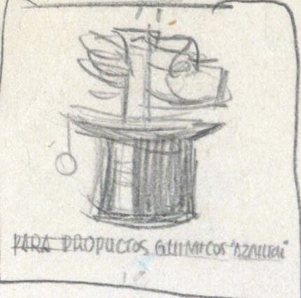 - En el centro de esta composición en la que destaca el color blanco grisáceo se ve un sombrero boca abajo en cuyo interior hay algo de difícil definición. Líneas abocetadas intentan enmarcar el dibujo.