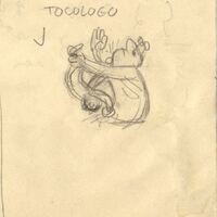 - En el centro de la composición y sobre fondo amarillo se representa a un hombre que coge sus piernas con sus manos, levantando una de ellas. Predominan las líneas oscuras.