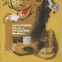 - Sobre un fondo amarillo destaca, en el centro, la figura de un gran león marrón y tumbado mientras bebe satisfecho una taza de café. En segundo plano se vislumbra una cebra. Inferiormente, se lee el título en letras negras.