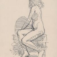 - Apunte de un desnudo de mujer sentada, que se ha dado la vuelta para mirar hacia atrás. Resulta curioso el sombreado, cuyas líneas separadas de sombreado, dan una sensación algo “estructuralista” al pequeño dibujo.